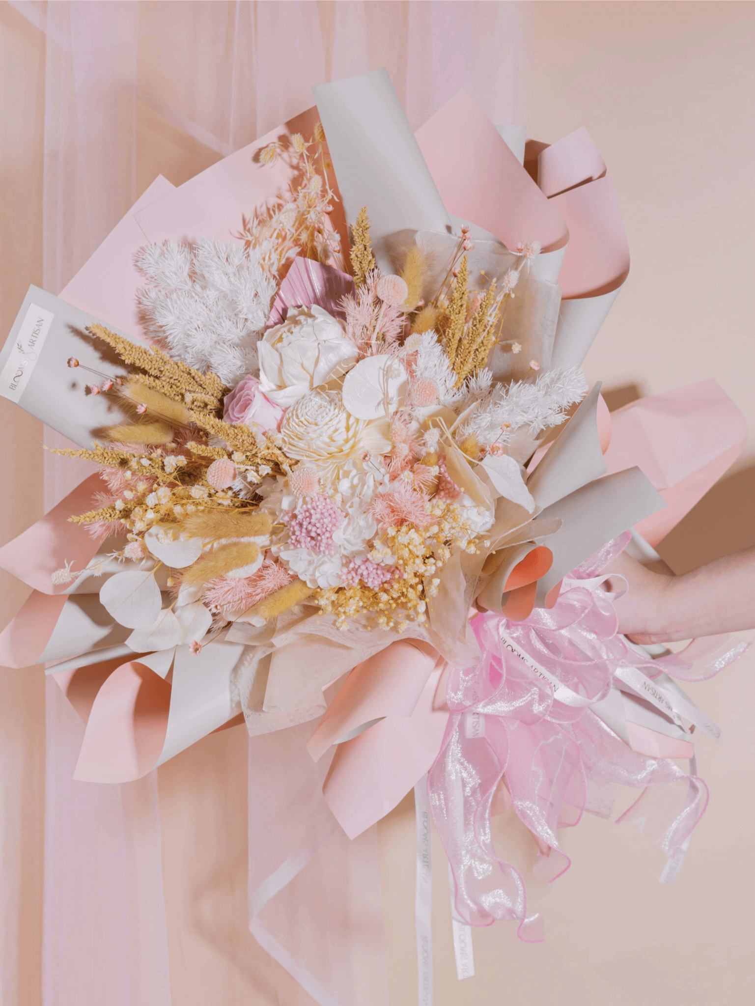 Looking for a rustic and pink themed bouquet? Our newest Bianca bouquet is here! Everlasting bouquet with a perfect balance of neutral and pink colors.