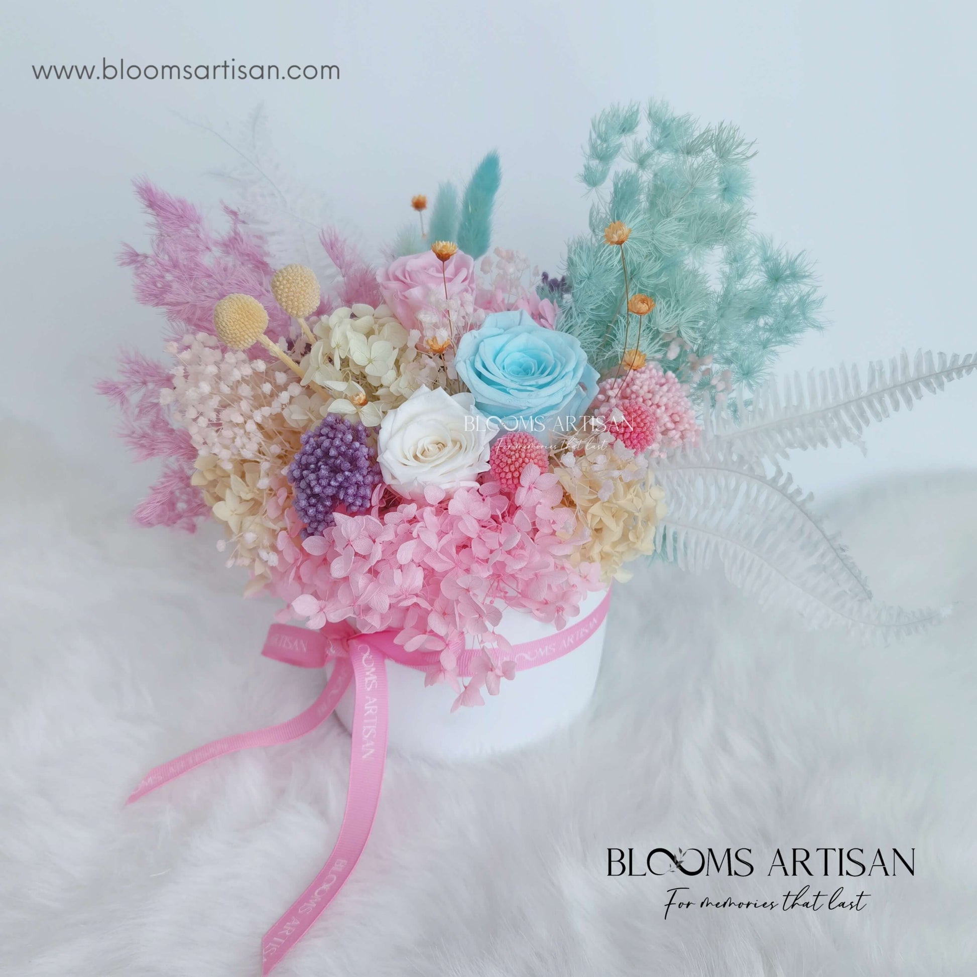 Our Artisan Arrangements are fully made out of dried & preserved flowers and can last for months to years if properly taken care of.