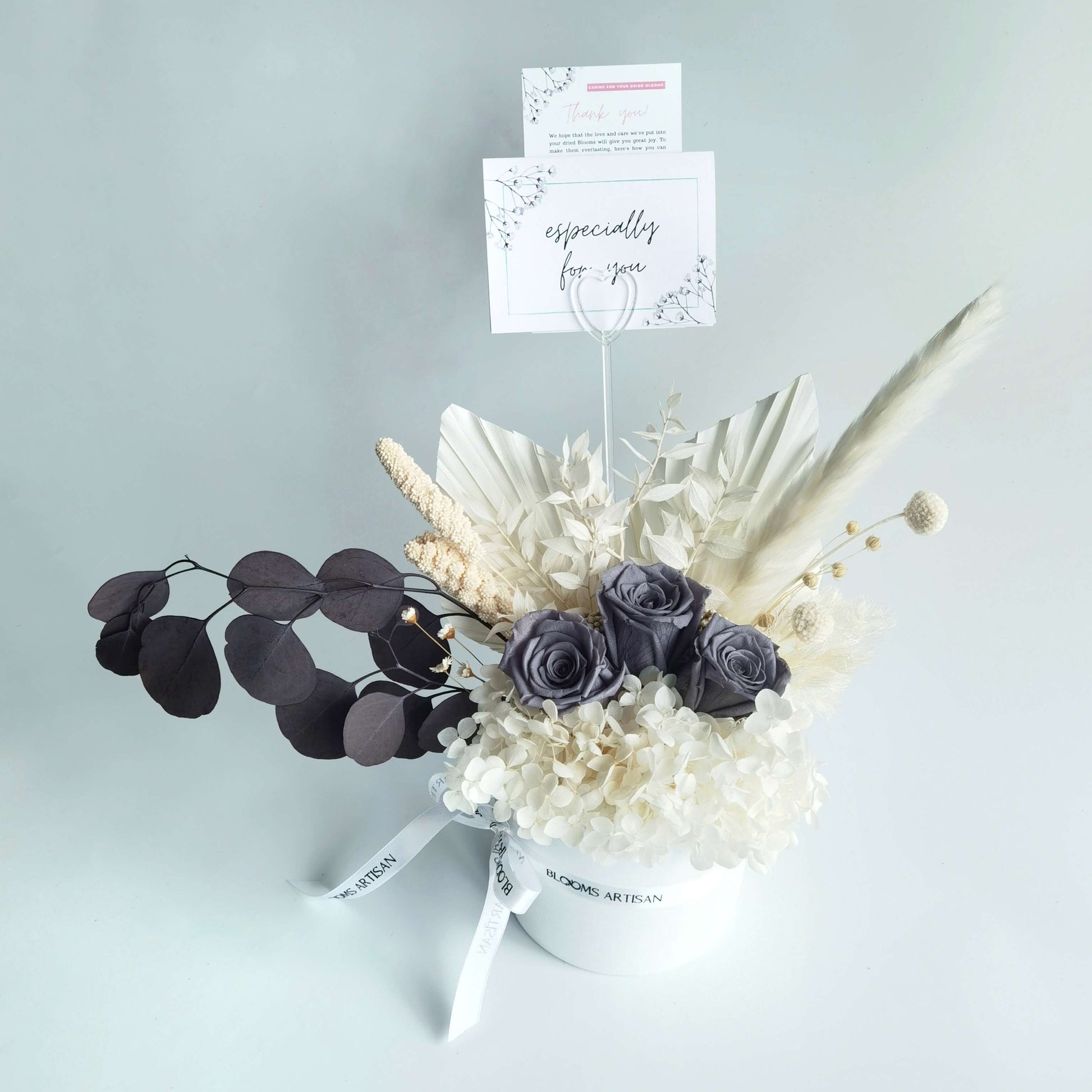 Our Artisan Arrangements are fully made out of dried & preserved flowers and can last for up to 2-3 years if properly taken care of.