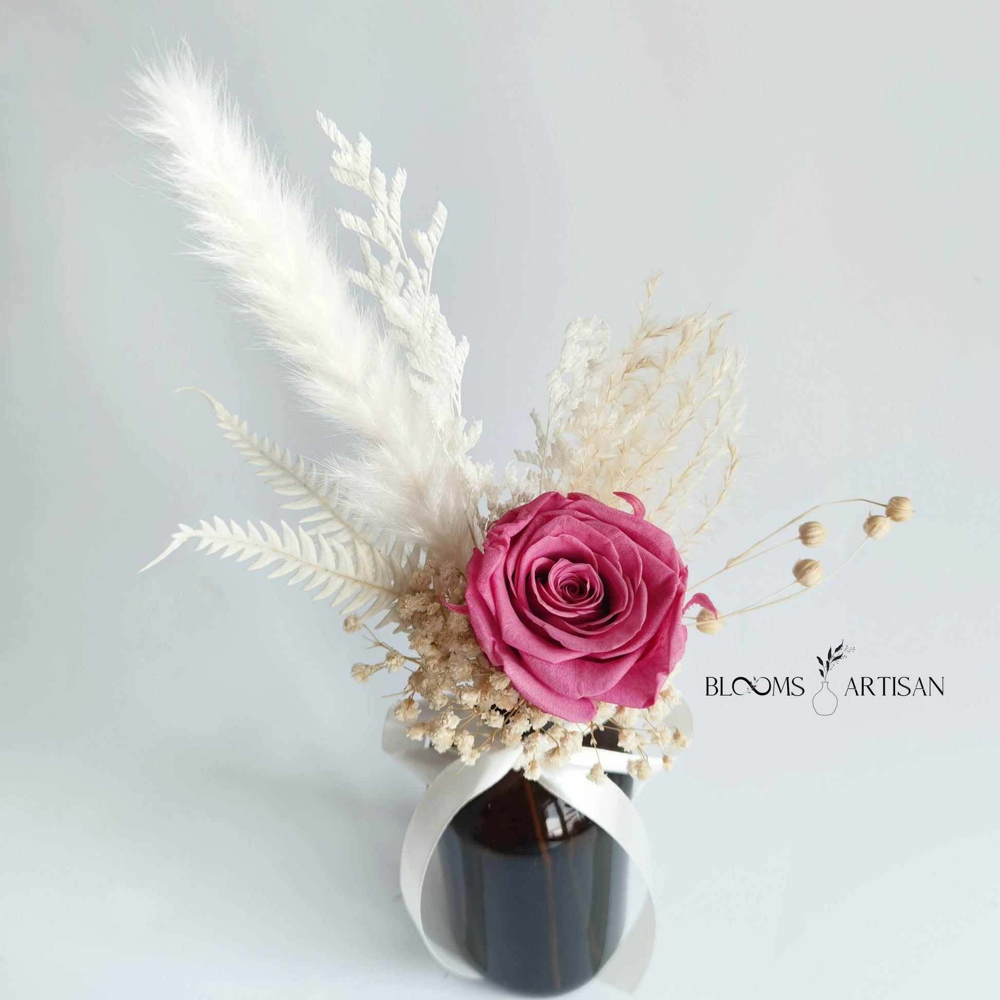 Presenting our DIY Floral Kit consisting of a premium preserved rose and complementing dried floral pieces you can use to create that aesthetic miniature arrangement of yours.