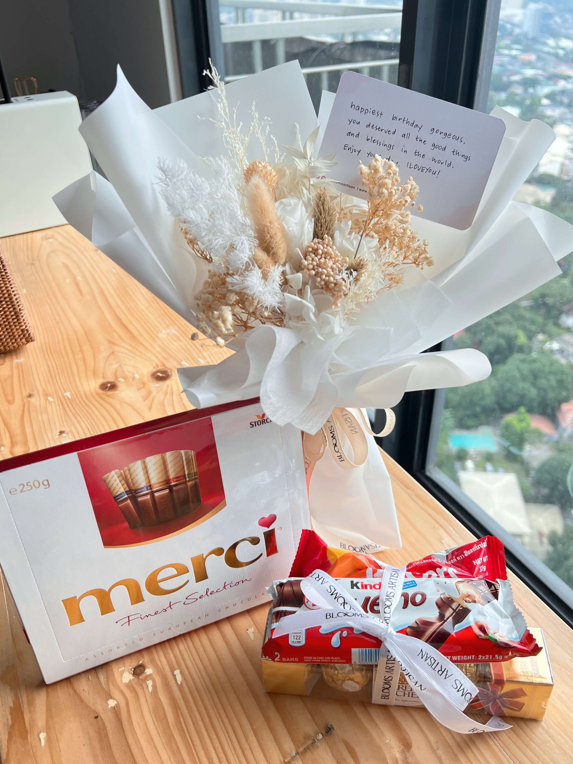 Our newest mini bouquet is composed of single preserved rose and dried blooms that could last for months to years if properly taken care of.