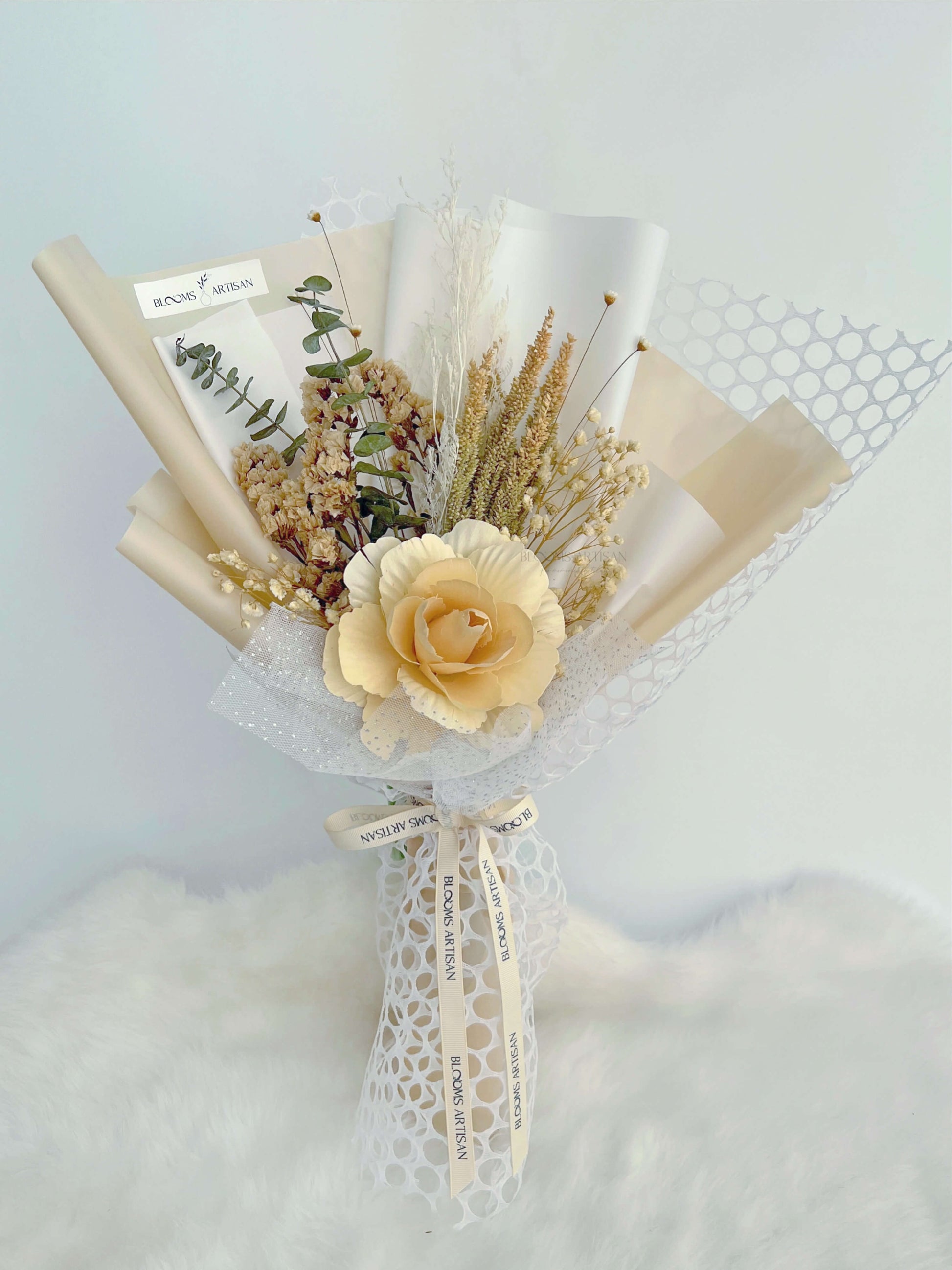 Our newest affordable rustic bouquet made up of dried blooms and naturally dried eucalyptus to surprise your loved ones or to have as a home decor.