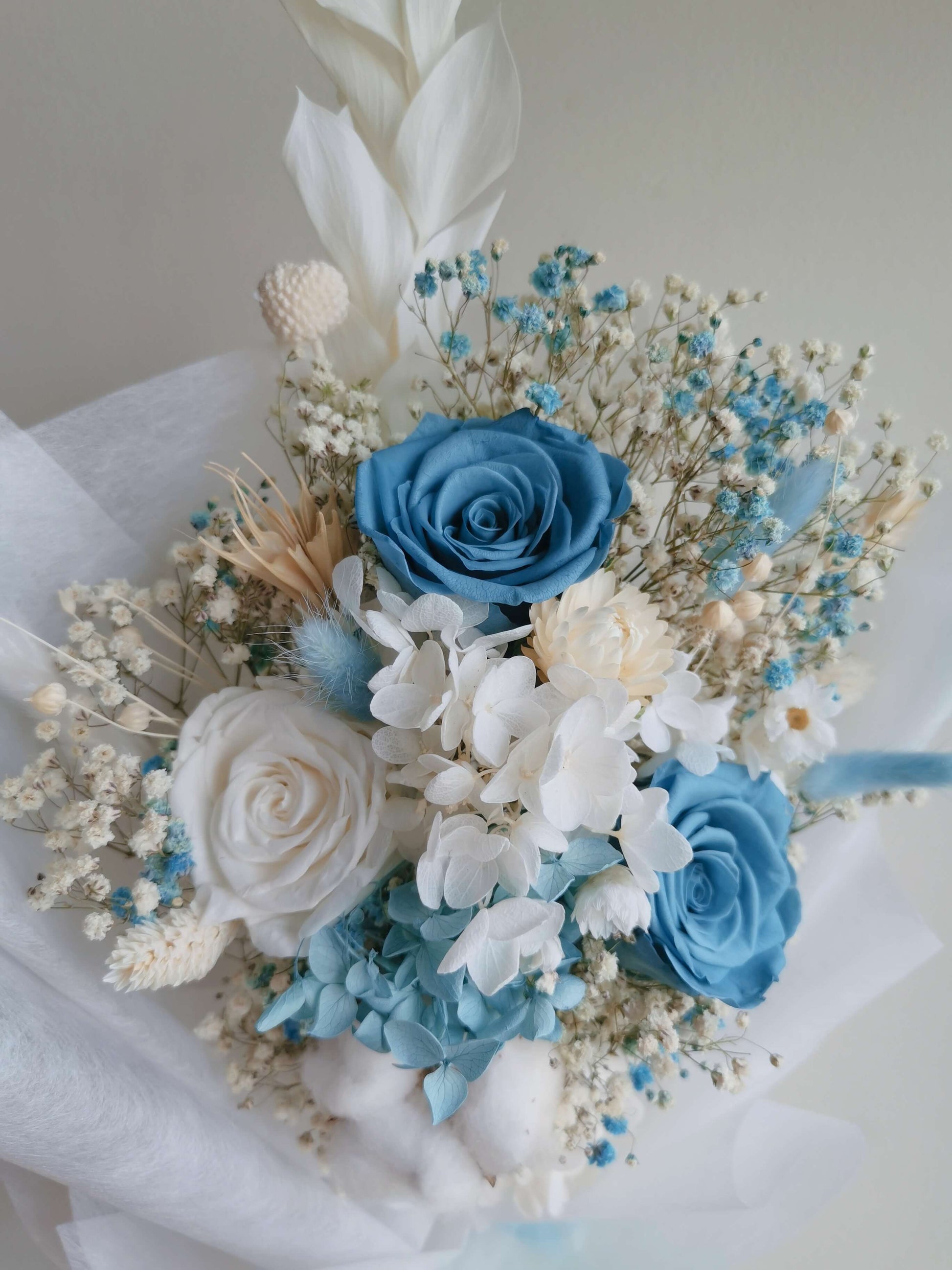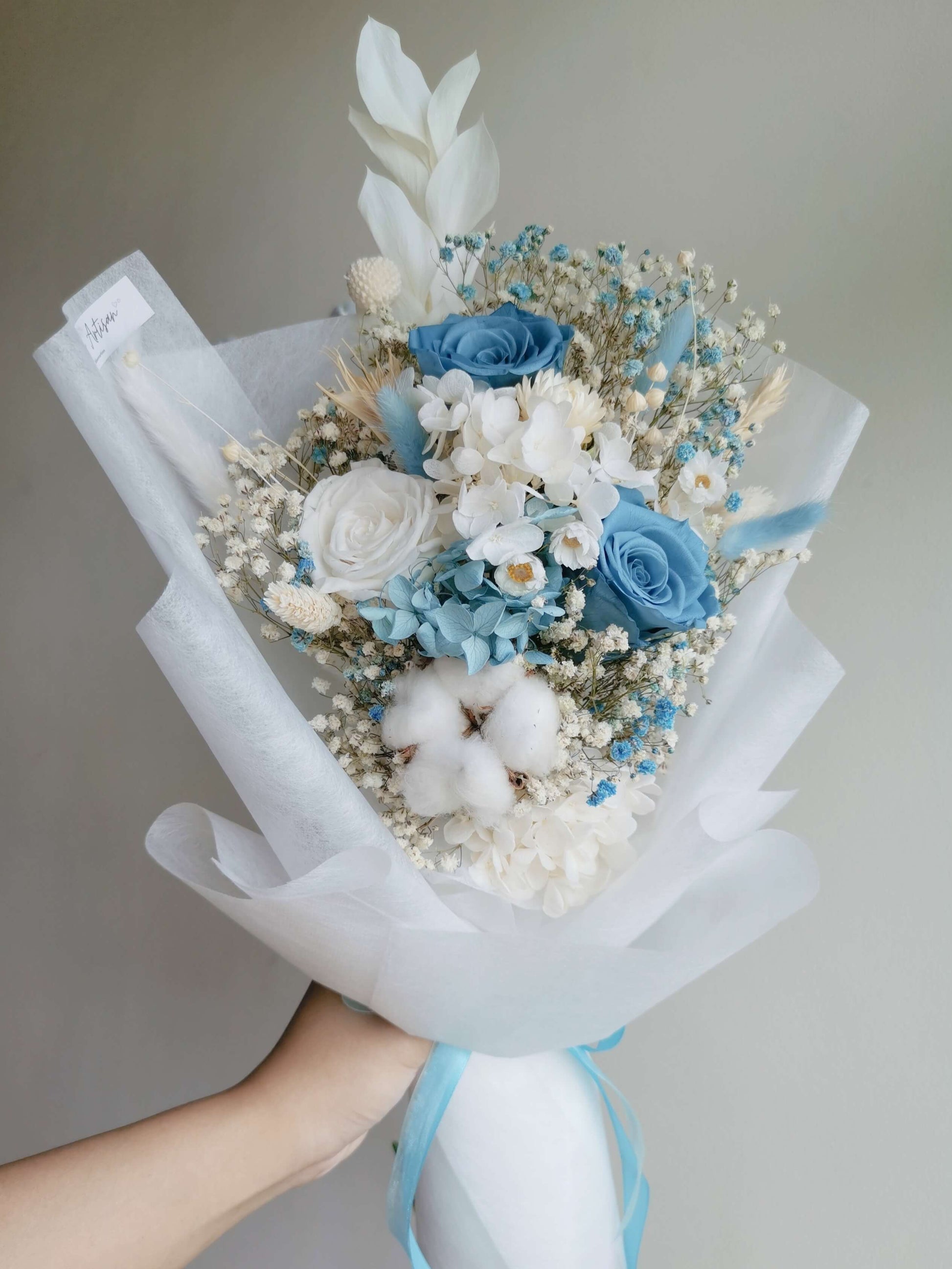 Our Everlasting Bouquets are fully made out of dried & preserved flowers and can last for up to 2-3 years if properly taken care of. Perfect to capture and preserve those memories.